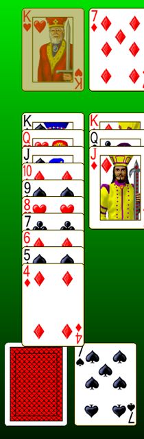 As you surely see, the cards from the piles above overlap with the cards from the piles down. Normally the cards spaces are narrowed to avoid such overlaps, but not in Lucas. |