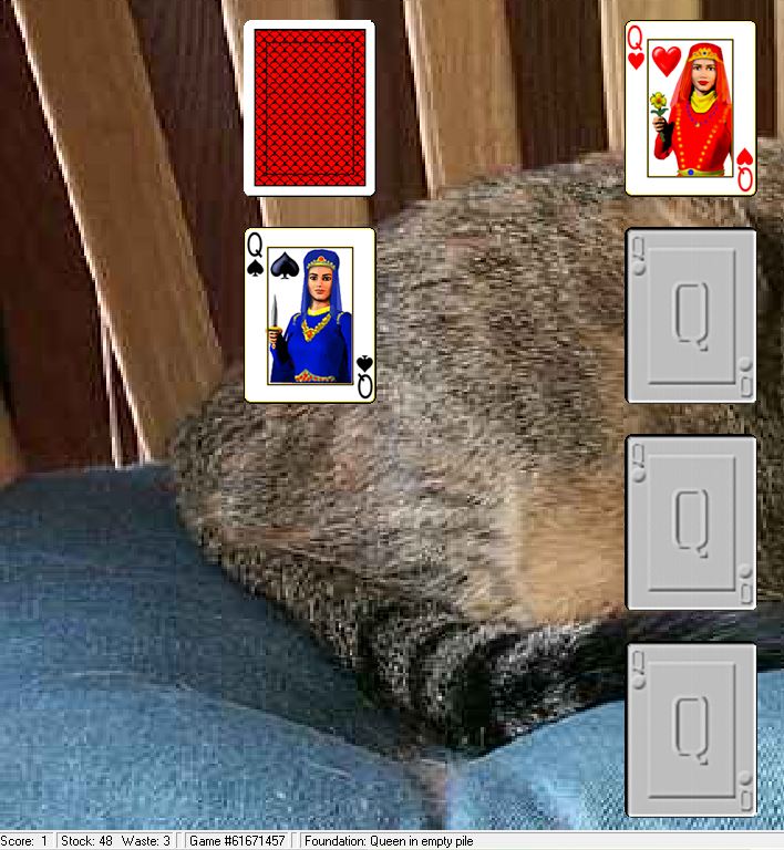 You can drag and drop both of the queens onto any of the cells marked with the Q. Thereafter you can move them around as you wish. If, let's say a KS got dealt from the stock, you could move the QS into the top cell and play the king onto it Those two cards can not longer be moved but the QH can. In this instance I'd leave it there and look for a third queen. It and the QH can still be moved into other cells after you've got a better idea what's coming from the stock.. It's just a lot of trial and error.